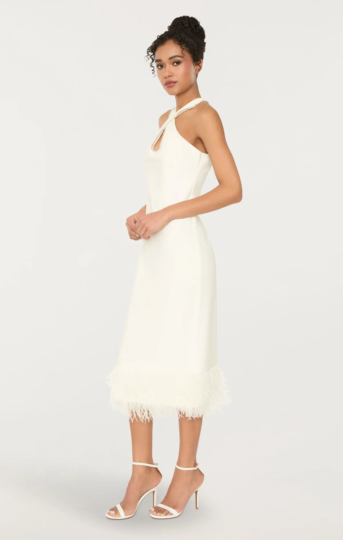 Unleash your playful side with the Hadley Dress! This quirky halter neck dress features a dazzling rhinestone trim and a whimsical feather hem. Perfect for adding a touch of fun and sparkle to your wardrobe.